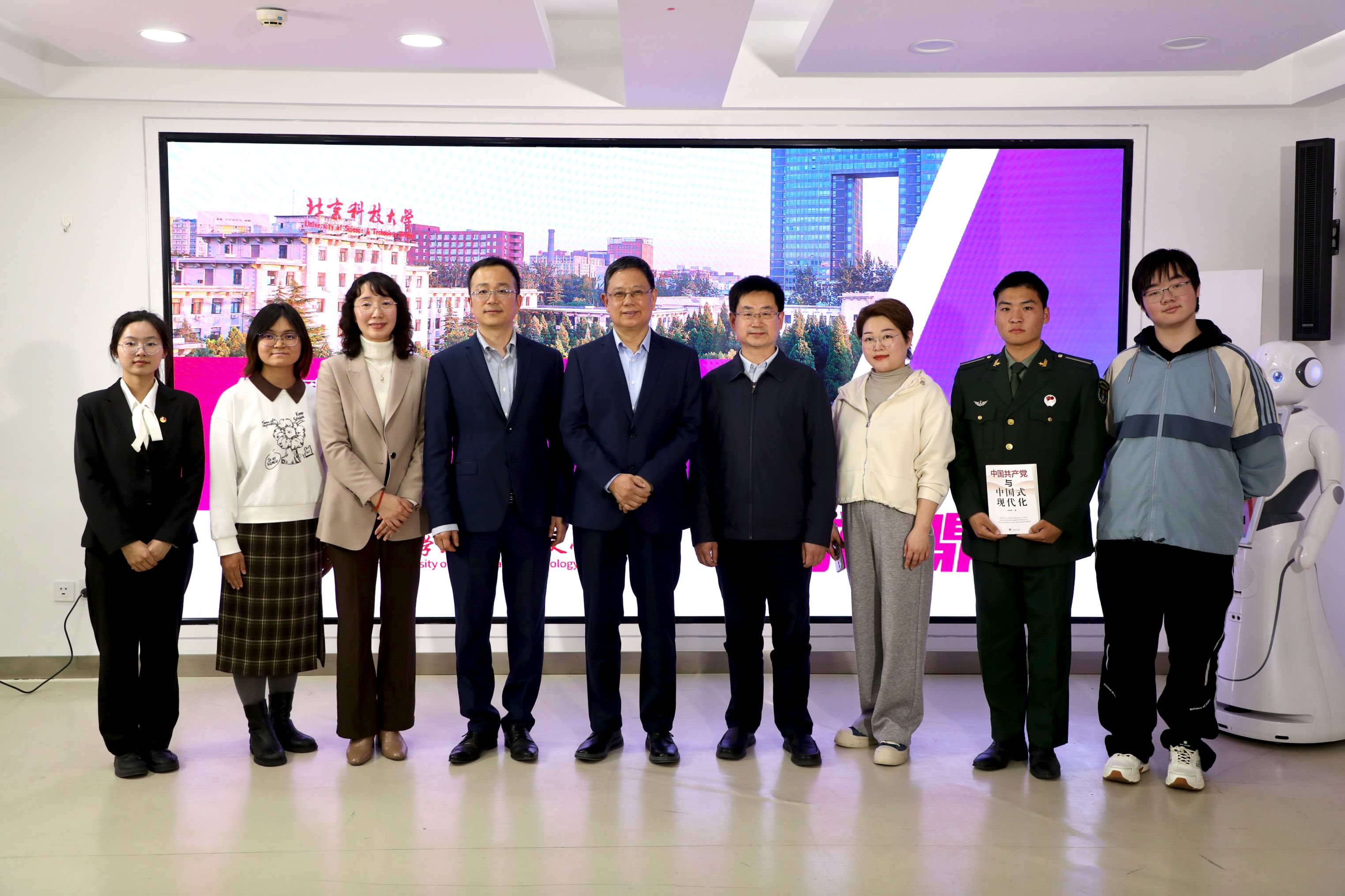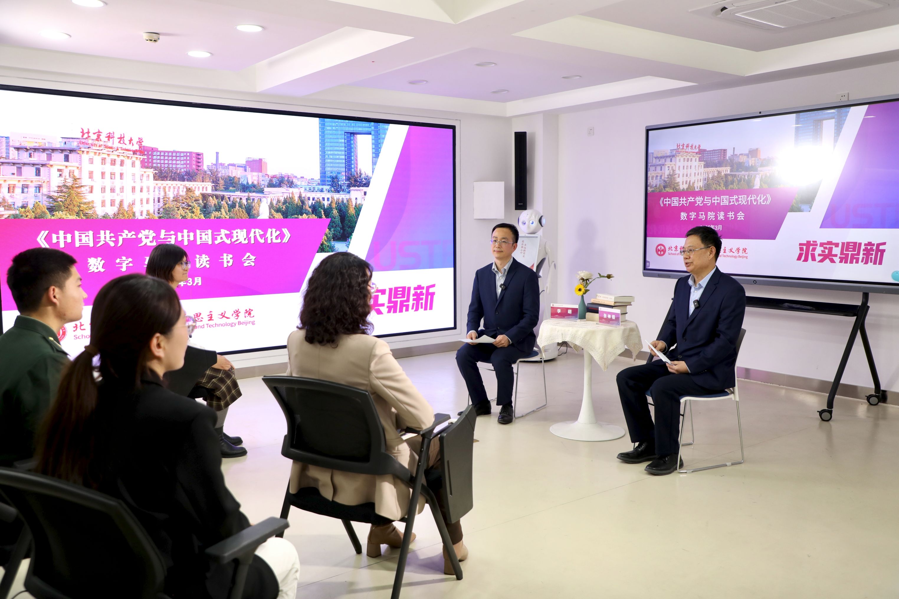 学校党委常委、组织部部长、统战部部长、马克思主义学院院长,同时兼任教育部高校思想政治工作队伍培训研修中心(北京科技大学)办公室副主任的袁方,以及马克思主义学院李辉老师作为嘉宾参与此次活动。同时还有集成电路学院(人工智能学院)刘鑫维、于跃和经济管理学院邱可欣同学共同参与。