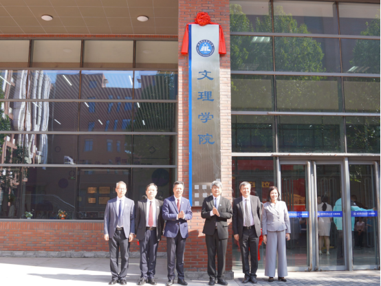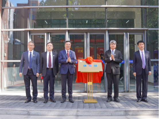 张启鸿、王伟共同为“文理学院”“体育部”揭牌,标志着学校在学科建设与体育工作领域开启新征程。