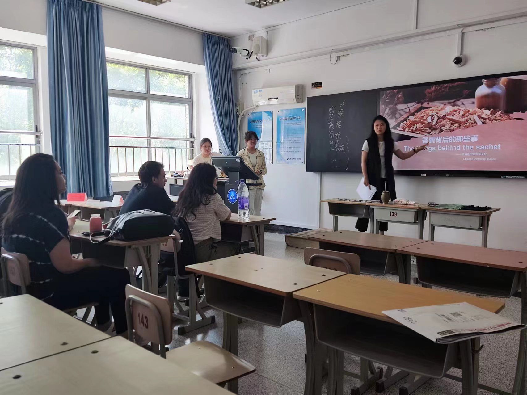 In order to enhance the understanding of international students studying in China about traditional Chinese culture, broaden their horizons, and cultivate their practical abilities and cross-cultural communication skills, on May 8th, the School of Economics and Management, in conjunction with the School of Biological Engineering, explained to international students about the traditional folk handicraft of the Tujia ethnic group, Xilankapu, and Chinese medicinal herb sachets. This enabled international students to experience the charm of traditional Chinese culture up close and enriched the forms of international Chinese language education.