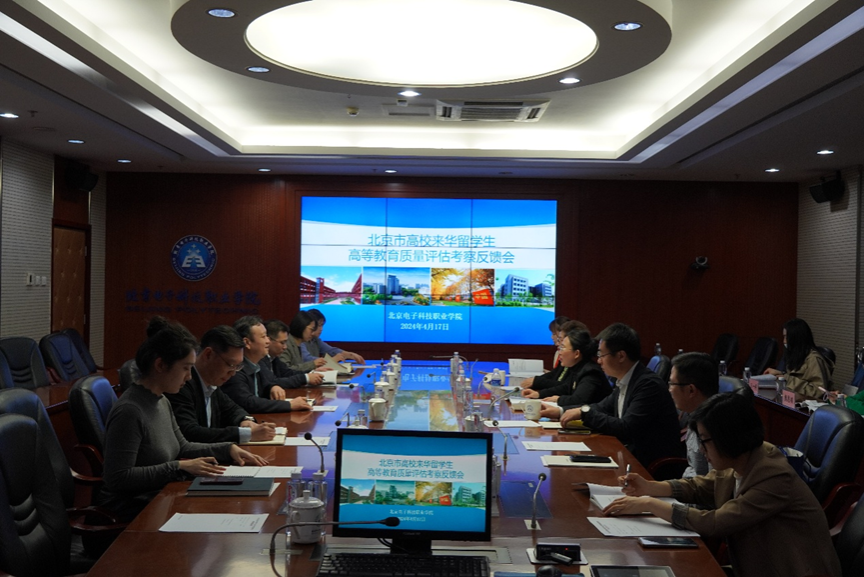On April 17th, the Beijing Municipal Education Commission carried out the on-campus evaluation of the quality of higher education for international students coming to China at our school. The school held an inspection briefing meeting in the lecture hall of the Comprehensive Building. Liu Liang, a fourth-level researcher of the International Cooperation and Exchange Office of the Beijing Municipal Education Commission, all members of the evaluation expert group, Yao Guangye, Deputy Secretary of the Party Committee and President of the school, Chen Jiangfeng, Standing Committee Member of the Party Committee and Vice President of the school, as well as representatives of relevant functional department heads attended the meeting.