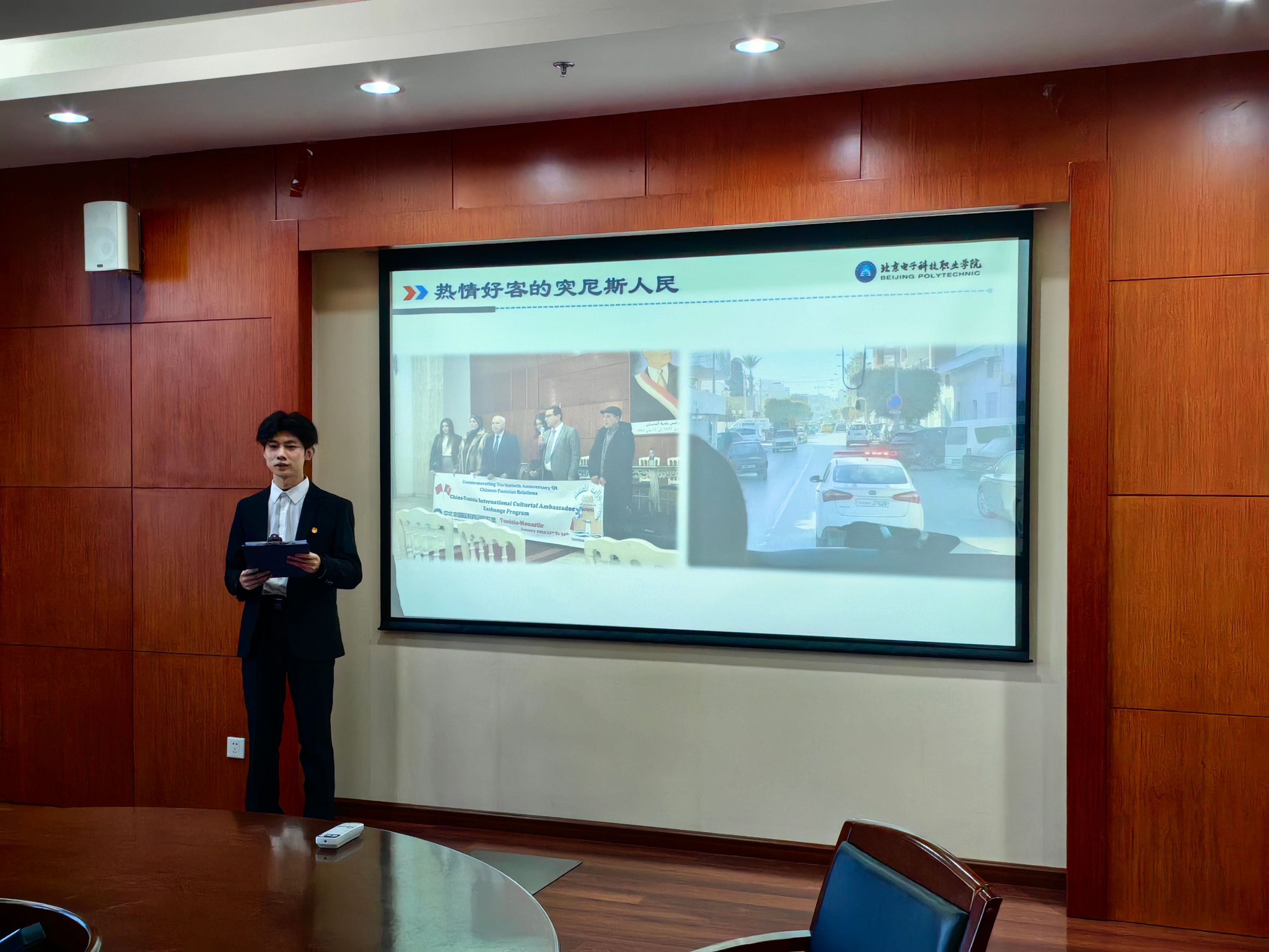 On the afternoon of March 6, 2024, the Division of International Cooperation &Exchange (Office of Hong Kong, Macao and Taiwan Affairs) of the school and Depariment ef Student Affairg of the CPC Beijng Polyfechnit Committee jointly held an exchange meeting on the achievements of the visit of the Tunisian student group. Chen Jiangfeng, the vice president of the school, attended the meeting.
