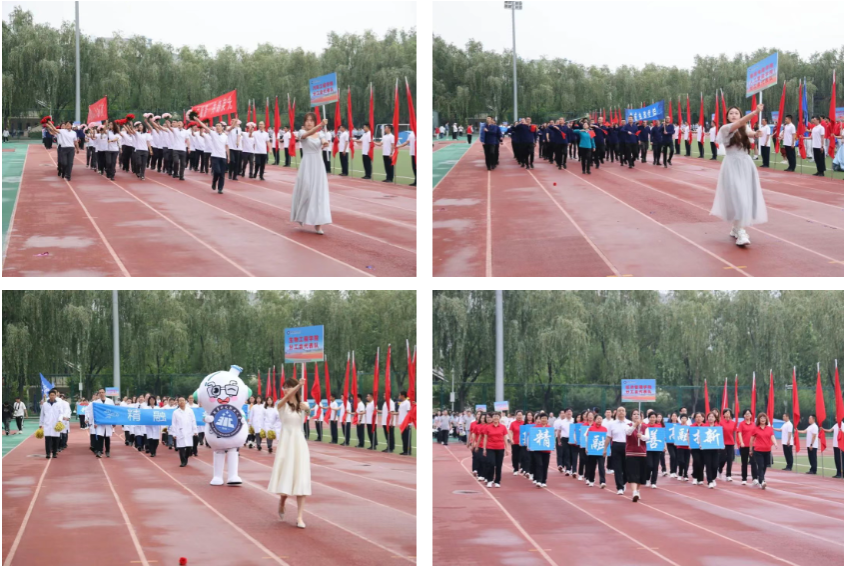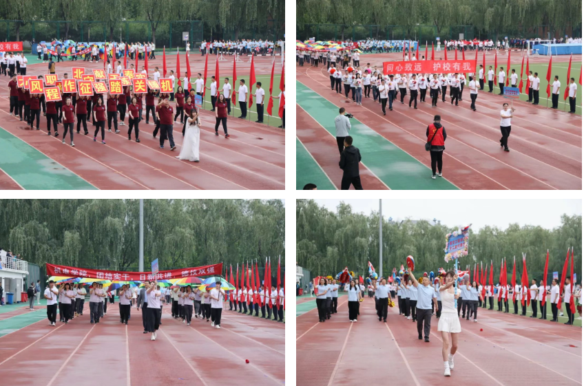 Teachers and student athletes from various colleges and sub - unions, dressed in clothing that highlighted their professional characteristics, passed the rostrum in turn with high - spirited postures.