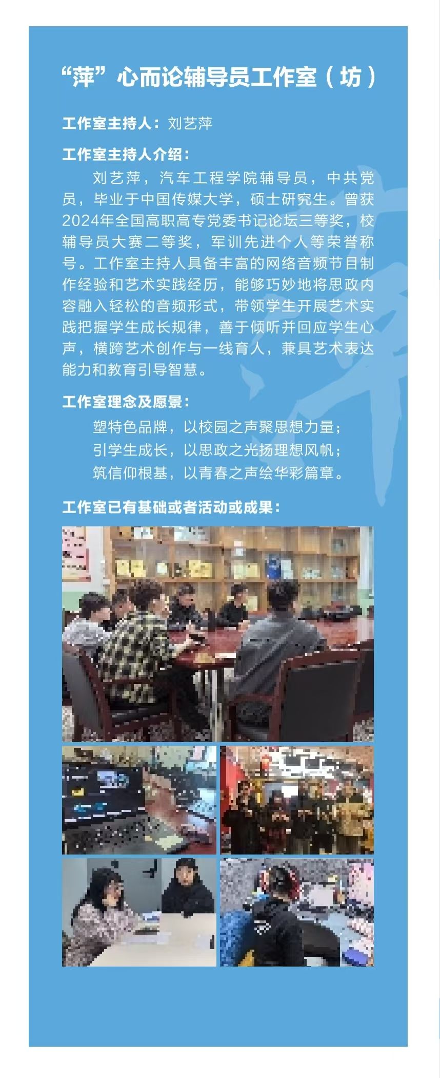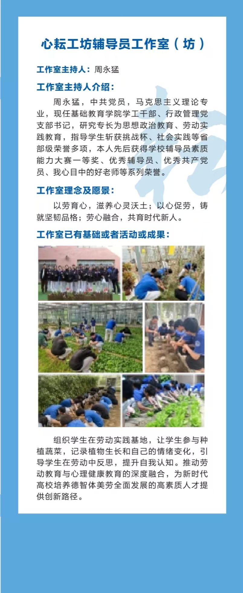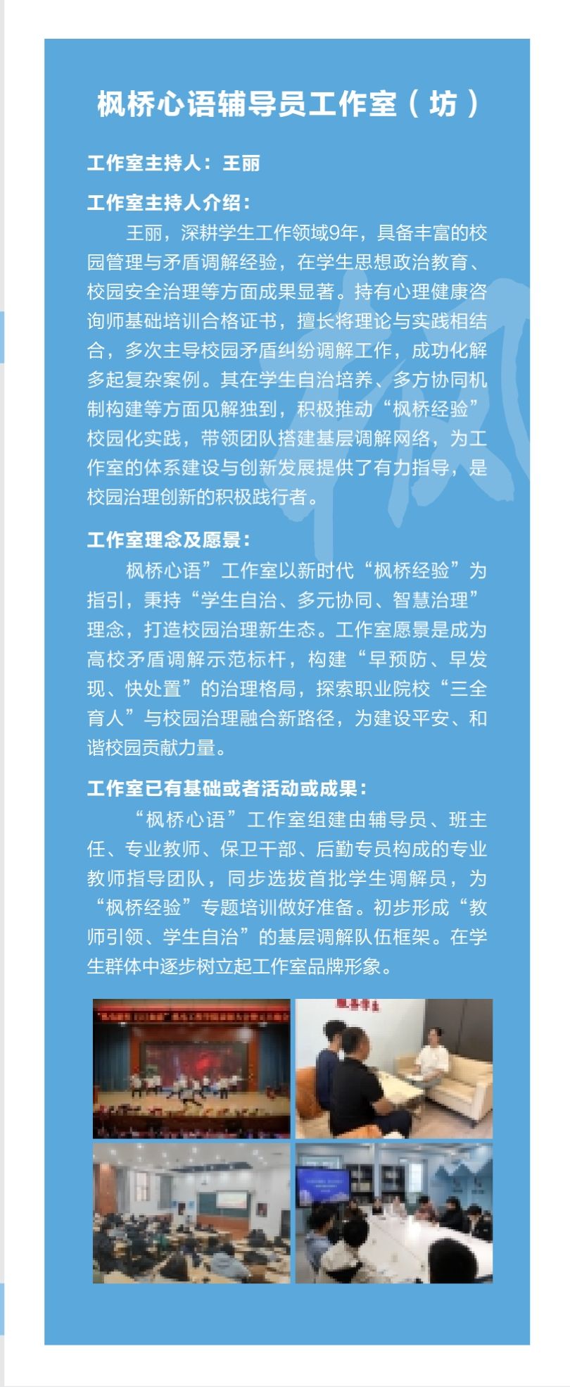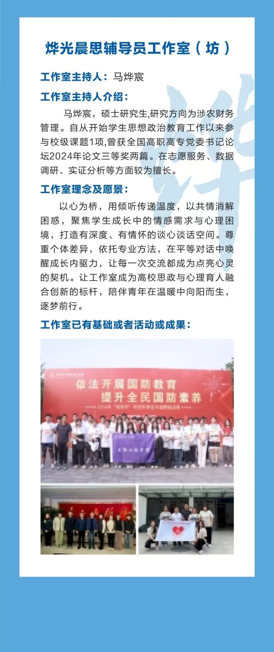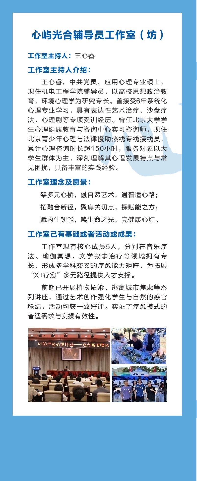 为进一步优化育人环境,筑牢立德树人阵地,2025年学校完成了“一室十二坊”的建设,为辅导员开展工作搭建了更优质的平台,也为同学们打造了一个可信赖、可依靠的 “心灵港湾”。