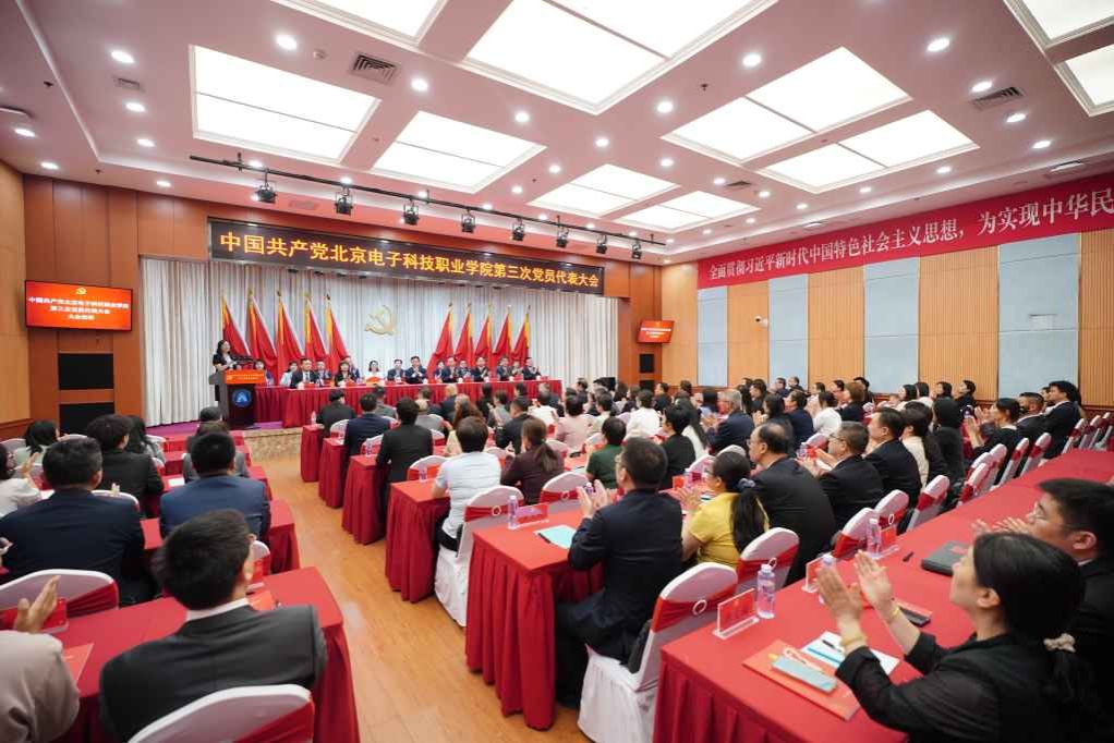 2023年7月1日,恰逢党的102岁生日,中国共产党北京电子科技职业学院第三次党员代表大会隆重开幕。这是在开启全面建设社会主义现代化国家新征程、在职业教育进入高质量发展新阶段、在学校事业发展掀开新篇章的新形势下召开的一次重要大会。大会主题为:高举中国特色社会主义伟大旗帜,以习近平新时代中国特色社会主义思想为指导,全面贯彻党的二十大精神和北京市第十三次党代会精神,认真落实立德树人根本任务,主动融入和服务首都发展大局,为建设首善标准、中国特色、世界一流高水平技能型大学而团结奋斗!全体党代表将带着全校党员和师生员工的嘱托,履行神圣使命,围绕这一主题共商学校事业发展和党的建设大计。