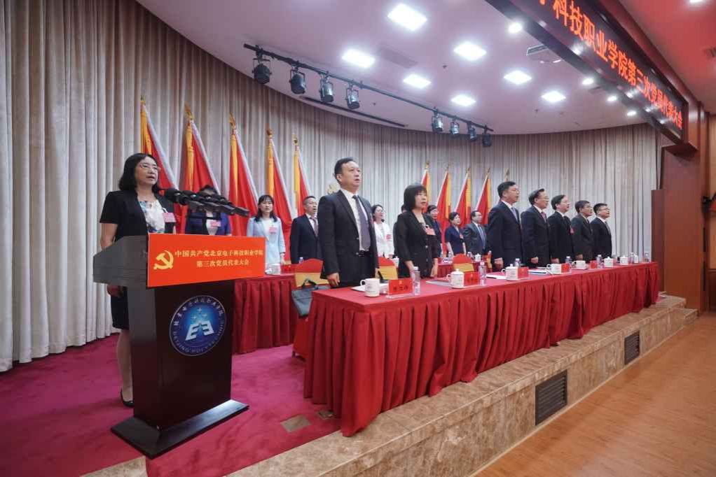 15时,中国共产党北京电子科技职业学院第三次党员代表大会圆满完成各项议程,在机电工程学院报告厅胜利闭幕。