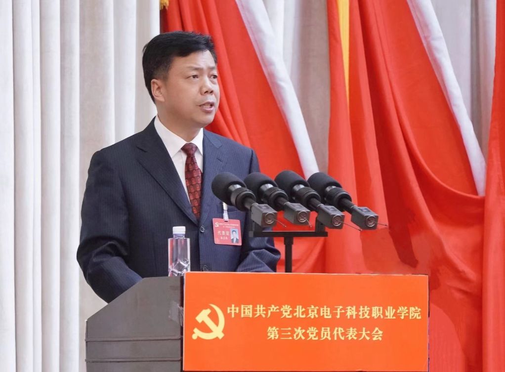 张启鸿代表中国共产党北京电子科技职业学院第二届委员会向大会作题为《坚守初心 赓续使命 为建设首善标准、中国特色、世界一流高水平技能型大学而团结奋斗》的报告。他在报告中系统总结了第二次党代会以来的主要工作,科学分析了学校发展面临的形势,进一步明确了未来五年的奋斗目标、学校事业发展和党的建设主要任务。