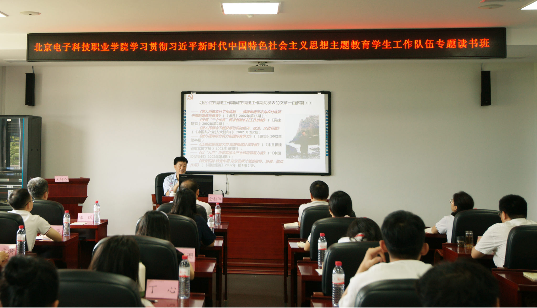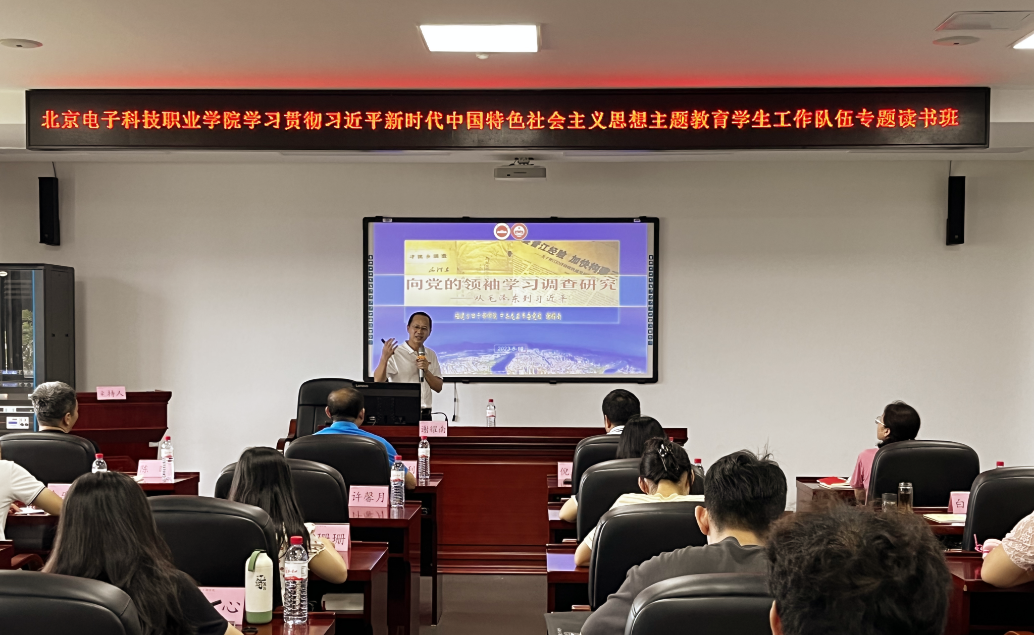 读书班采取专题授课和实地教学相结合的方式,主题鲜明,内容丰富。古田干部学院俞桂海教授以《习近平新时代中国特色社会主义思想在福建的孕育与实践》为题,全面详实地介绍了习近平总书记关于经济思想、生态文明思想以及党建与组织工作的重要论述,以及以人民为中心的重要论述在福建的孕育和实践过程,使全体学员更加深刻地理解了习近平新时代中国特色社会主义思想的形成发展过程和重大时代意义。古田干部学院谢耀南作《向党的领袖学习调查研究》的报告,系统介绍了毛泽东同志和习近平总书记在福建开展社会调查的实践活动,使全体学员更加深刻地理解了“没有调查就没有发言权”的重大意义和开展学生工作要“围绕学生、关照学生、服务学生”的现实意义。