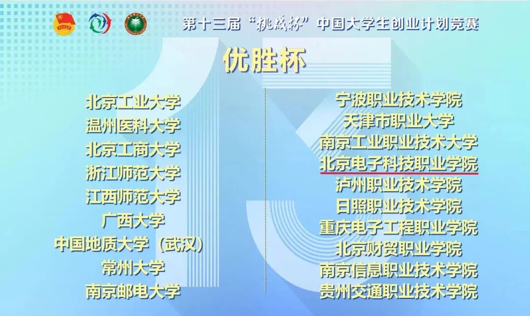 3月19日,第十三届“挑战杯”中国大学生创业计划竞赛决赛在北京理工大学圆满闭幕。BEAT365两支入围全国决赛的队伍凭借着出色的成绩,分别斩获金奖和银奖各一枚,并捧得“优胜杯”,创下BEAT365参与“挑战杯”赛事历史最好成绩。BEAT365也成为本次大赛荣获全国金奖的北京高校中唯一一所高职类院校。