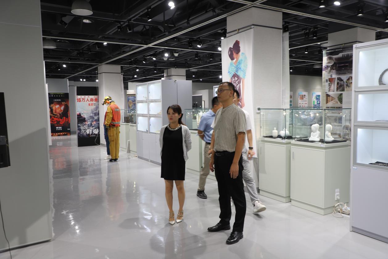 座谈会前,中广协网络直播产教融合基地惠买集团领导参观走访了艺术设计学院教学成果展、大师工作室等地。
