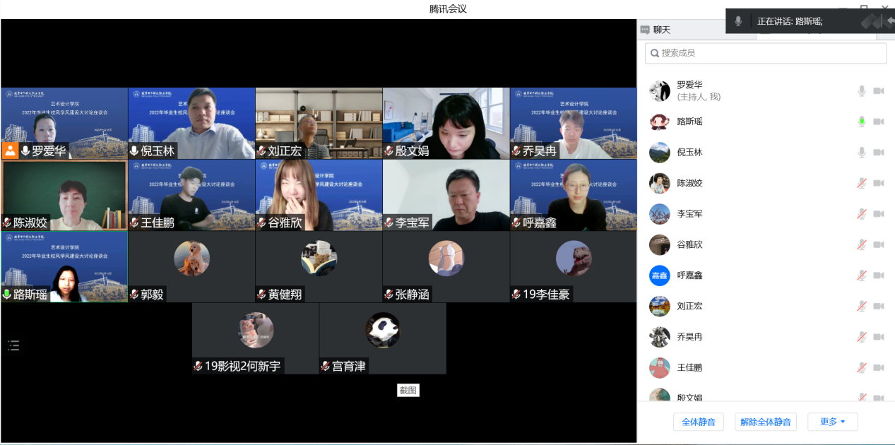 毕业班的学生代表前期认真准备,在座谈会上进行了认真的发言交流。19数字媒体1班黄健翔谈到,学风建设是校风建设的重要内容,优良的学风是提高教育教学质量的重要条件,是全面推进素质教育,为社会培养高素质人才的关键。当前学风存在的主要问题是,个别班级的学习氛围不佳,部分学生的纪律性不强,自我约束能力较弱。尤其在本学期线上学习期间,考勤问题更加凸显,希望教学管理部门提高巡课频次,任课教师、班主任和辅导员紧密配合,做好考勤困难学生的思想工作,引导学生自觉上课,自主学习。 19数字媒体2班路斯瑶谈到,希望加强课堂管理,教育引导学生自主学习。加强班风建设,发挥学生干部和成绩优秀同学在班级中的表率作用。希望多组织比赛,多提供平台,让更多的同学参与进去,激发学习兴趣,提升专业实践能力。19影视2班何新宇谈到,建议学院根据行业变化灵活调整教学计划。建议老师在上网课期间能保持随时在线,以方便学生与老师之间进行更高效的沟通。19服装班乔昊冉谈到,部分同学学习目标不够明确,希望加强课堂纪律的管理,营造良好的学习氛围,激发同学们的学习热情,提高同学们自主学习的积极性。17贯通广告1班谷雅欣谈到,专升本考试结束后,课堂出勤情况明显下降,希望老师加强课堂教学管理。