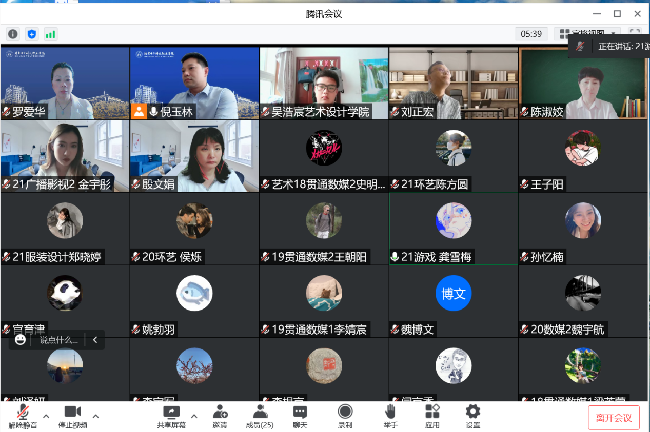 与会学生围绕“匠心育人抓教风、三全育人促学风”主题积极发言,坦言当前在教风学风中存在的问题,并就学风建设中发挥主观能动性、学院课堂教学管理、考勤管理、落实“三全育人”等方面提出了意见和建议。19贯通数媒2班王朝阳谈到,加强教风学风建设非常重要,学风会使学生受到潜移默化的熏陶和感染,创建认真学习、虚心求教、勤于思考、积极探索的优良院风学风,对营造健康向上的学习氛围至关重要。应该用制度来约束同学们,用纪律规范日常学习行为,提高同学们的自制力,避免迟到、早退的现象,营造一个良好的学习氛围,树立“热爱学习、学会学习、善于学习、终身学习”的观念,以实际行动和效果促进良好学风的建立。20广播影视班吴浩宸谈到,要把学风建设和系里其他工作密切结合,增强学生自律性,使学风建设渗透到教学工作和学生的日常学习生活中开展。组织全体同学召开主题班会,使学风建设入脑入耳,深入到各个同学之中。以营造良好学习氛围为基础,以抓学生自主学习专业技能、职业素养为核心,以提高同学们成绩为重点,有效利用时间,让同学们变被动学习为主动学习,以班级为单位开展学习榜样等评选活动,带动全体学生争优创先,营造浓厚的学习氛围。21数字媒体1班王子阳同学谈到,树立“优良学风、从我做起”的意识,积极参与学校的学风建设,从自身做起,从严要求,做一名与时俱进的学生;尊敬老师、团结同学,加强沟通,相互探讨、相互学习,努力形成见贤思齐的学习氛围;端正学习态度、主动学习,严守课堂纪律,从点滴做起,不旷课、不迟到、不早退、专心听讲、勤于思考、遵守纪律、积极参与课堂教学活动;坚定“诚信光荣,作弊可耻”的信念,自尊自爱,勇于面对挑战,严格遵守学校的各项规章制度,以“诚信、文明、自觉、向上”的原则约束自己;积极参加社会实践活动,与时俱进,勇敢面对学习中新的挑战,在知识海洋中争取卓越的成绩。21环境艺术系的陈方圆谈到:学风,是读书之风,是治学之风,更是做人之风,加强学风建设是为培养学生自主学习能力,推进班级发展的重要举措。创建团结、勤奋、严谨、求实、创新的优良学风能够营造浓厚的学习氛围,引导同学们奋发向上,积极进取、使他们在耳濡目染和潜移默化中受到教育,增强学校的向心力和凝聚力。21游戏设计班的龚雪梅谈到,在平时的上课中,可以多注重跟学生的互动交流,用互相问答和交流的方式来教学,可以大大地增加学生们对学习专业知识的积极性,在针对课本的理论知识时,可以多结合实际工作中具体例子或者是多做些模拟操作,让学生们在学习到理论知识的同时也能在实践方面得到更好地锻炼。