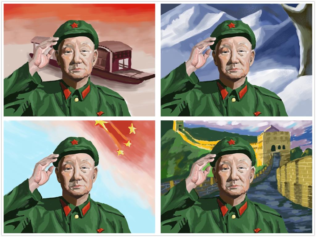 此次“艺术创作话党史”主题党日活动中,各系部的党员教师代表结合自己创作的党史主题作品,谈学史感悟,讲创作心得。在传媒系党支部和综合教学党支部共同开展的党日活动上,传媒系党员教师孙磊介绍了老红军系列插画的创作过程:他以特级战斗英雄张国富为原型创作出饱经风霜却目光坚毅的老红军形象,用南湖的红船、绵延的雪山、巍峨的长城、鲜艳的国旗等典型元素代表了中国革命和建设的不同历史时期,表现了建党百年筚路蓝缕的奋斗岁月,彰显出走好新时代长征路的信心和决心。孙磊表示:作为一名党员,一名高校教师,传承红色经典文化,是一种责任也是一种担当。在对张国富英雄事迹的学习和形象的创作过程中,再一次真切地感受到了中国共产党人用生命和鲜血铸就的信念与忠诚、永远坚守的初心和使命。