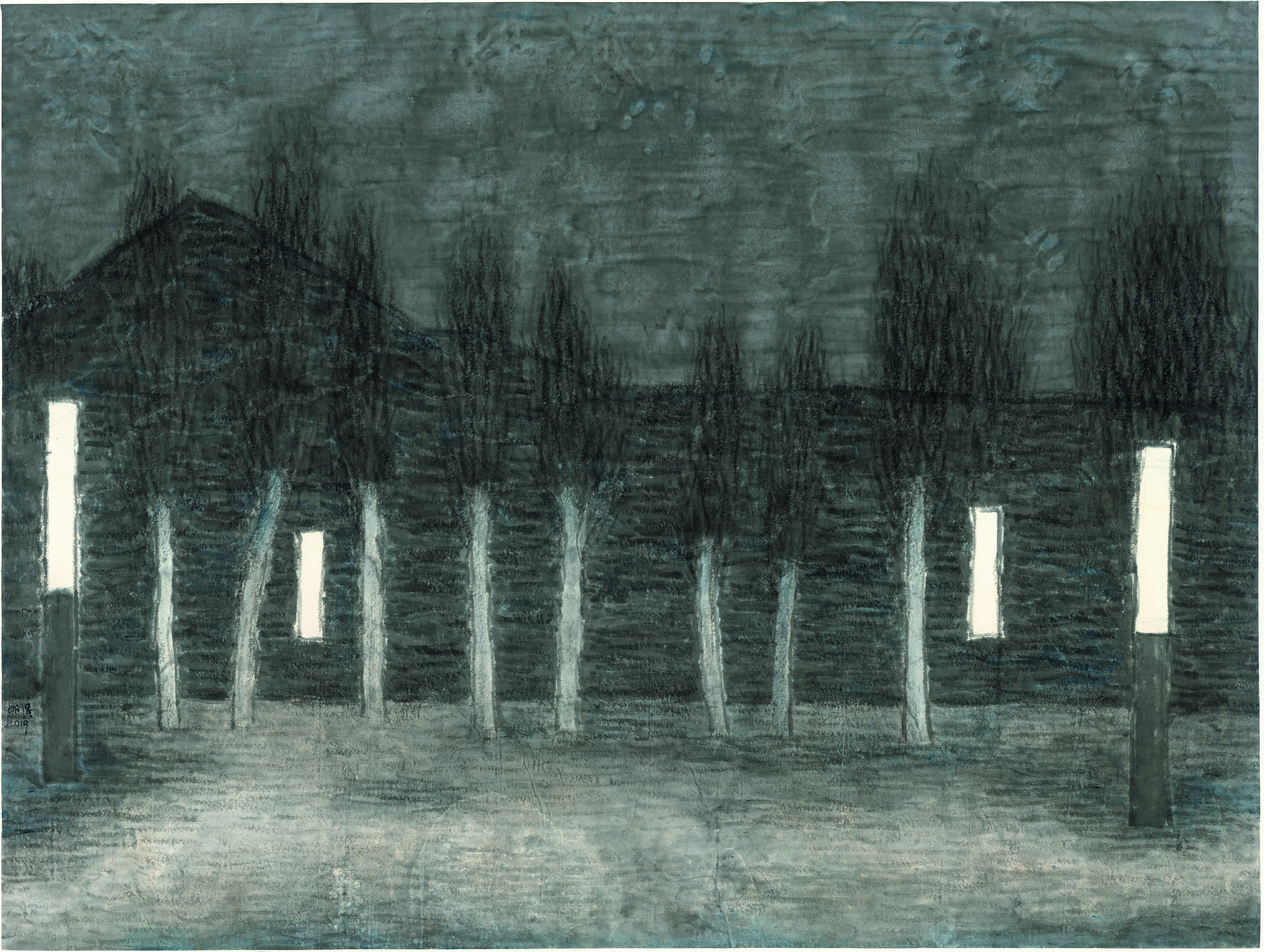胡明强《寂静的夜》2019年,120·170,水墨纸本