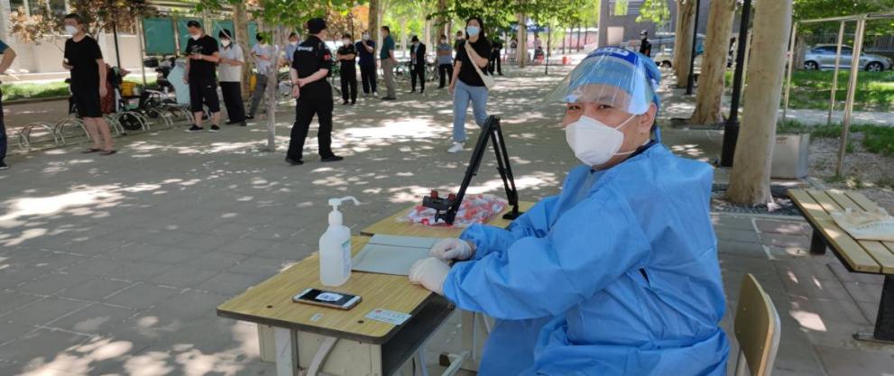 装饰系的丁晓飞老师,隔离在校期间一直辅导学生准备“互联网+”大赛并积极创作景泰蓝作品。组织的关心和支持让他能全身心投入教学和科研工作,同时安排好时间,以饱满的热情为学校师生服务。他热心地帮助入校工作的同志在人手紧缺的情况下一起盘点固定资产,他积极响应党支部的号召,志愿报名作为第一梯队加入到校内抗疫志愿者的工作当中,协助医务人员开展核酸检测证件扫码、信息核验等工作,为校园封闭管理贡献自己的力量。