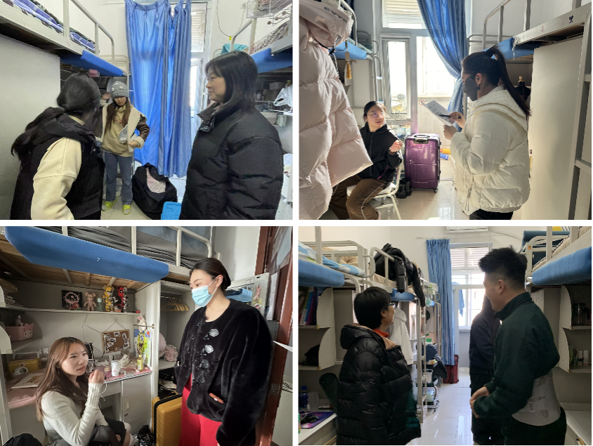 新学期伊始,为深入了解学生的思想状况和学习生活情况,切实做好新学期学生管理服务工作,2月25日,学院党总支书记殷文娟带领班子成员、学工部戴妍妍老师、学院全体辅导员及班主任前往学生宿舍,对返校生进行访谈慰问。