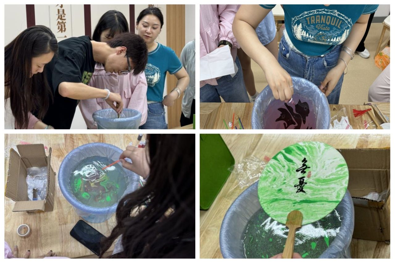 一缸水,几滴漆,扇面在水中缓缓搅动,色彩跃然而上,这是独属于漆扇的美。5月22日,艺术设计学院辅导员李博闻、孙忆楠、丁心、刘梦一在“一站式”学生社区学生成长室指导学生展开线下漆扇体验活动,旨在让更多学生感受漆扇制作的精妙技艺,深入领略这一非物质文化遗产的独特魅力。