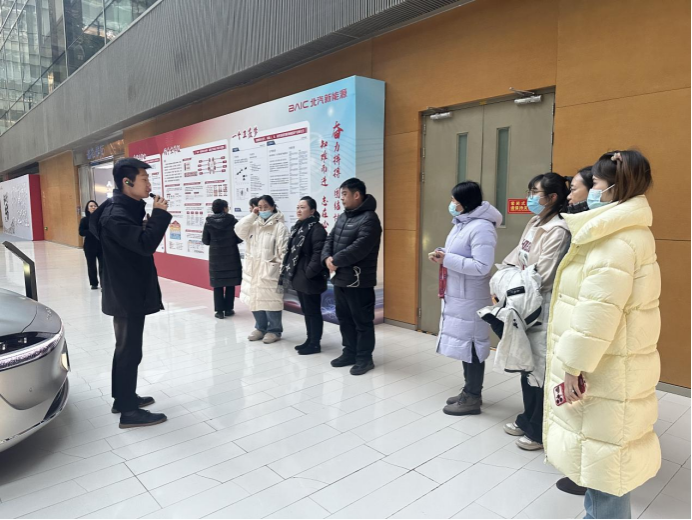 为了加强校企合作,促进产学研深度融合,12月27日,艺术设计学院影视动漫系前往北汽新能源蓝谷园区开展了调研活动,影视动漫系骨干及青年教师参与调研。北汽新能源党委组织部、人力资源部部长崔大龙,招聘负责人周晶晶、新媒体营销部副部长杨乐接待调研团。双方就建立北汽新能源企业新媒体运营团队、学生顶岗实习、企业培训等方面展开了深入交流。