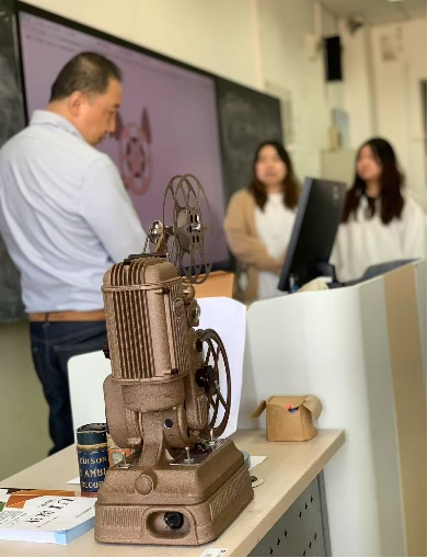 课程特邀深耕设计领域31年的企业专家王宏伟与校内教师组成"双师"团队。在"音乐播放器界面设计"专题教学中,王宏伟携百年影音文物打造"移动设计博物馆"——爱迪生蜡筒留声机的机械美感、无声电影放映机的操作逻辑、贝尔摄影机的历史重量,成为鲜活的教学载体。学生们亲手转动黑胶唱盘、调试16毫米胶片,从机械时代的交互逻辑中提炼现代界面设计语言。通过了解贝尔摄影机,让学生近距离了解到设计不仅是美学表达,更是文明记忆的载体。