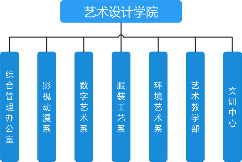 艺术设计学院内设部门有:综合管理办公室,影视动漫系、数字艺术系、服装工艺系、环境艺术系、艺术教学部,实训中心。